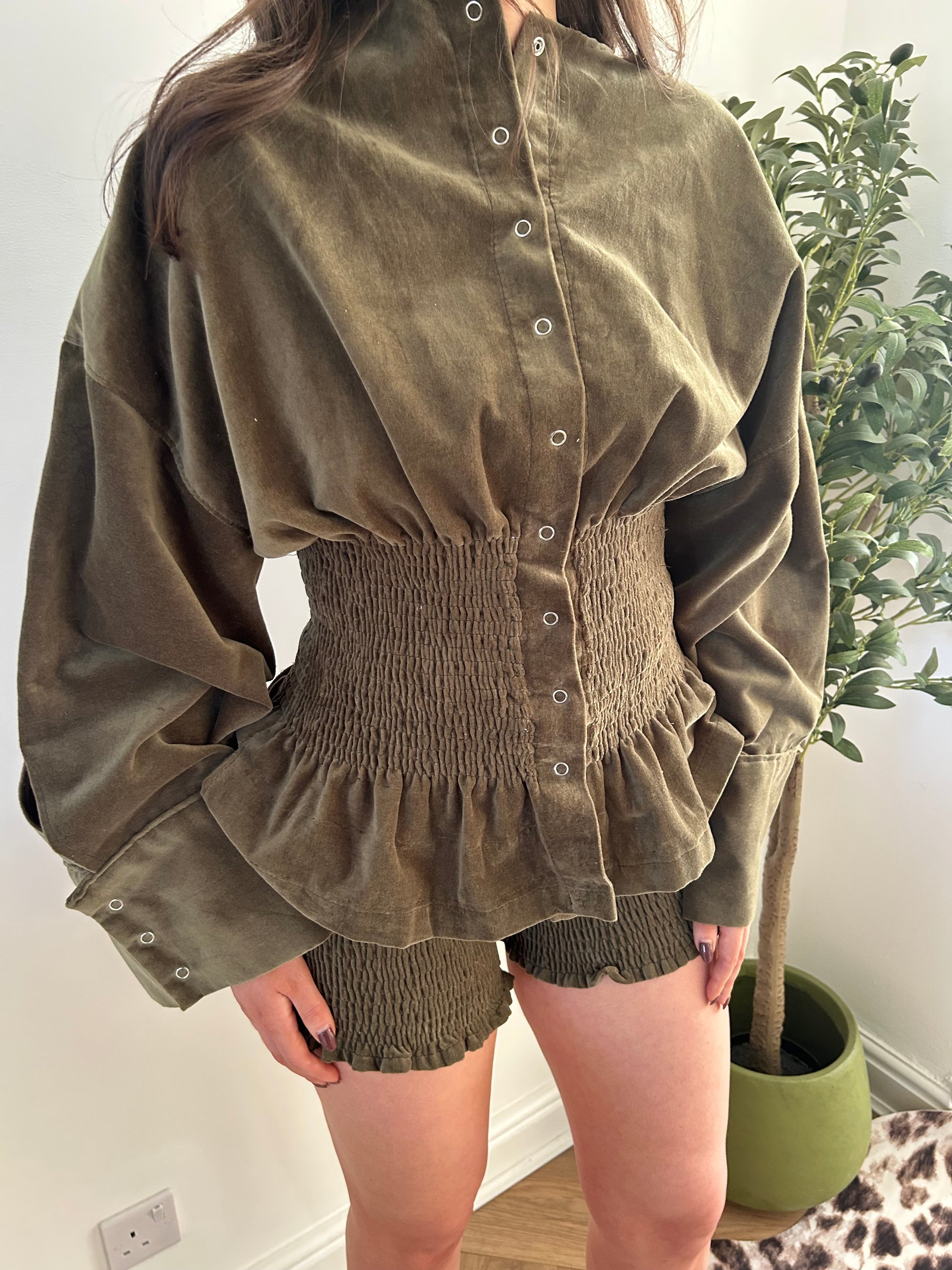 - Shirring detail on both shirt and shorts