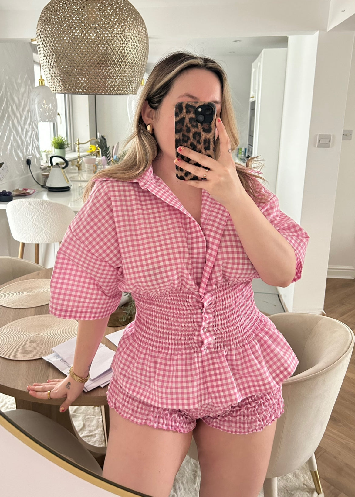 - Please note if purchasing the pink gingham shirt and shorts on separate dates, size and shade of squares may vary very slightly. This usually isn’t noticeable but just so you guys are aware!