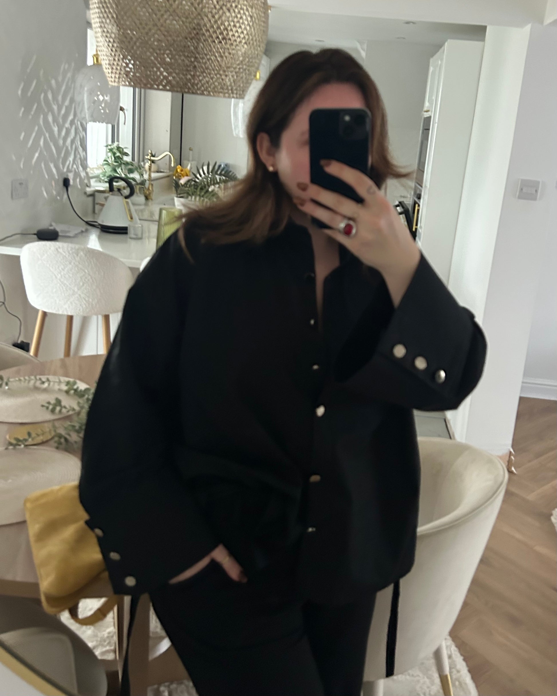 - Versatile - wear with the ties done for a cinched waist, or undone for the full oversized boxy look.